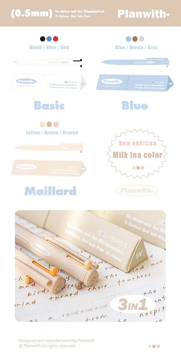 1 Triangular Multi-color Pen Three Color 0.5 Minimalist Marker Pen Student Homework Correction Multifunctional Neutral Pen